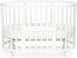Но еще более практичным выбором станет круглая кроватка трансформер, которую можно использовать не только как люльку, но и как манеж, диванчик или даже столик с креслами по мере роста малыша.