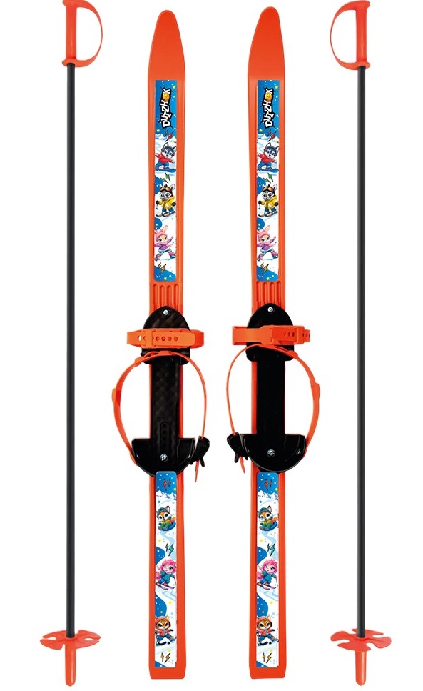 Лыжи комплектуются универсальными креплениями, которые одеваются на повседневную обувь и фиксируется на ноге двумя регулируемыми ремнями (размер обуви от 28-32).