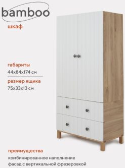Детский шкаф Rant Bamboo — стильное решение для организации компактного хранения вещей, благодаря разноформатным секциям и меняющимся по высоте штангам, прослужит вашему ребенку долгое время.