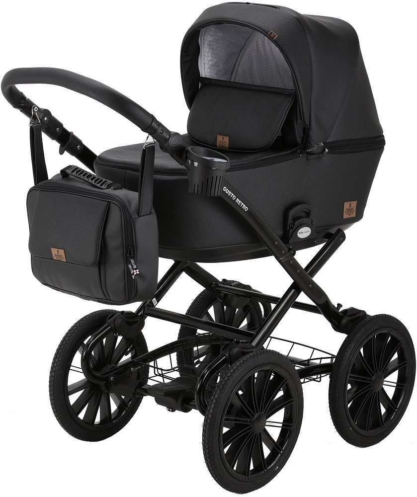 Детская коляска BeBe Mobile Gusto Retro Deluxe 2 в 1 — стильная коляска со слегка угловатым дизайном и первоклассной обивке из экокожи на классической алюминиевой раме с большими надувными колесами.