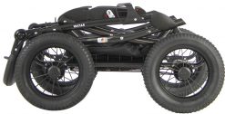 За счет классического шасси с неповоротными надувными колесами модель имеет отличную проходимость и управляемость. Рессорная амортизационная система прекрасно сглаживает все неровности дорожного покрытия.