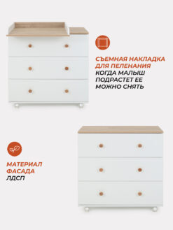 Комод с пеленальным столиком Rant Elsa 3 ящика выполнен в трендовом стиле скандинавский минимализм и идеально вписывается в любой интерьер.