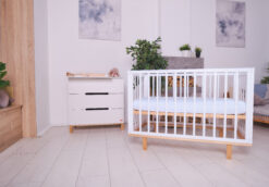 Комод Rant Indy 800/3 имеет бортик, превращающий его в полноценный пеленальный столик. Более того, можно менять положение пеленального бортика, устанавливая его посередине поверхности комода, правее или левее. Когда ребенок подрастет, бортик можно будет снять.