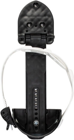 Удобный зажим-трещётка заднего ремня, позволит вам быстро настроить крепление под ногу юного лыжника.