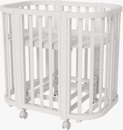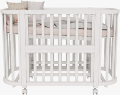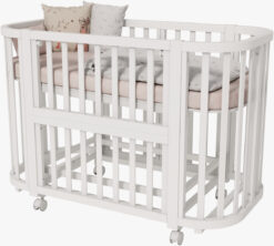 Комплект расширения превращает ее из уютной колыбели размером 84×60 см в просторную детскую кровать длиной 120 см, подходящую детям до четырех лет.