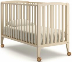 - Высокоглянцевое покрытие поверхностей кроватки защищает кожу малыша от травмирования;
