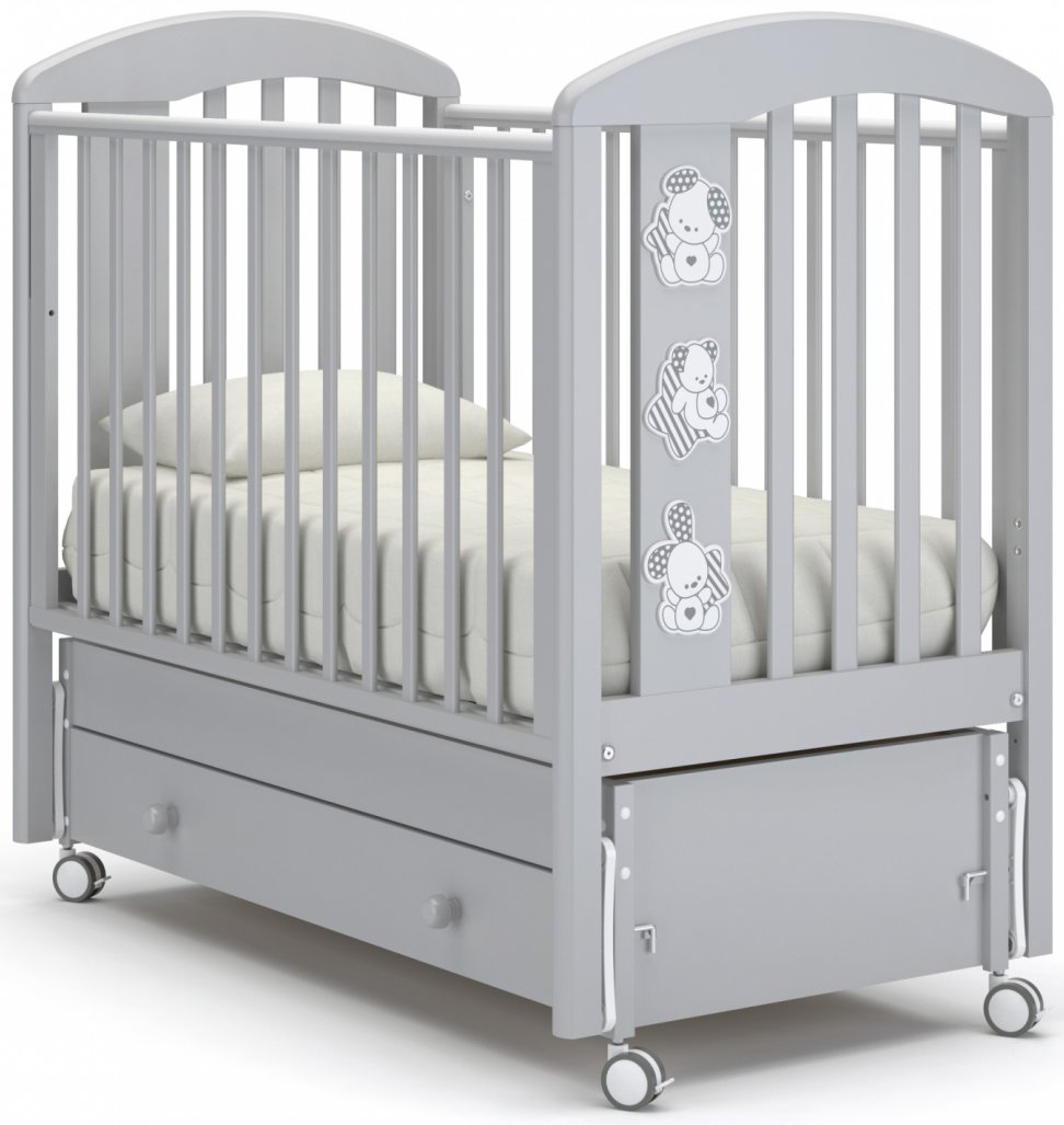 Кроватка оснащена округлыми краями деталей, исключающими риск травмирования маленького ребенка.