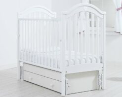 Купола боковых перекладин, изящный баланс вертикалей и горизонталей, тонкий узорчатый декор превращают детскую кроватку в настоящий дворец мечты, сулящий крохе самые чудесные сновидения.