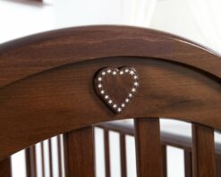 Корпус кроватки изготовлен из массива натурального кавказского бука и не имеет острых углов.
