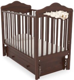 - Высокоглянцевое покрытие поверхностей кроватки защищает кожу малыша от травмирования;