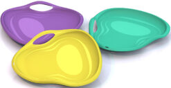 Благодаря легкому весу ребенок может самостоятельно поднимать ледянку на снежную горку.