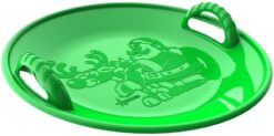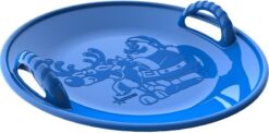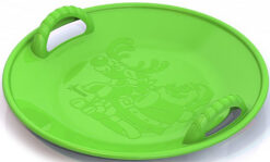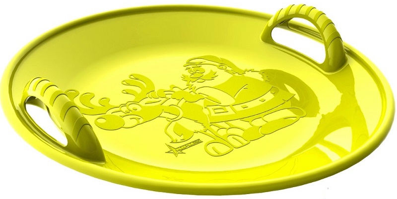 Устойчивые и маневренные салазки украшены оригинальным рисунком на зимнюю тематику.