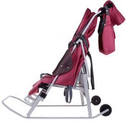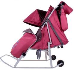 Для преодоления бесснежных участков дороги есть колесики, расположенные на задней части полозьев.