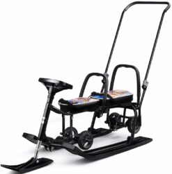 - Легкий, устойчивый, полностью разборный снегокат со спинкой;