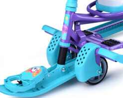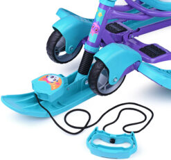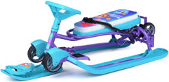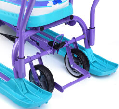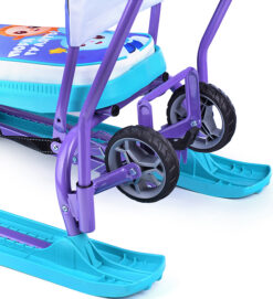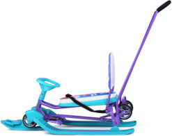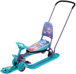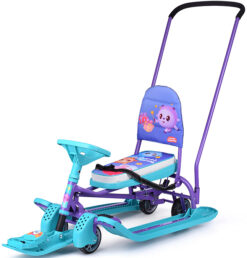 Сняв родительскую ручку его можно использовать, как обычный снегокат на лыжах. Колесная база не снимается. Спинка складная и не мешает кататься вдвоем.