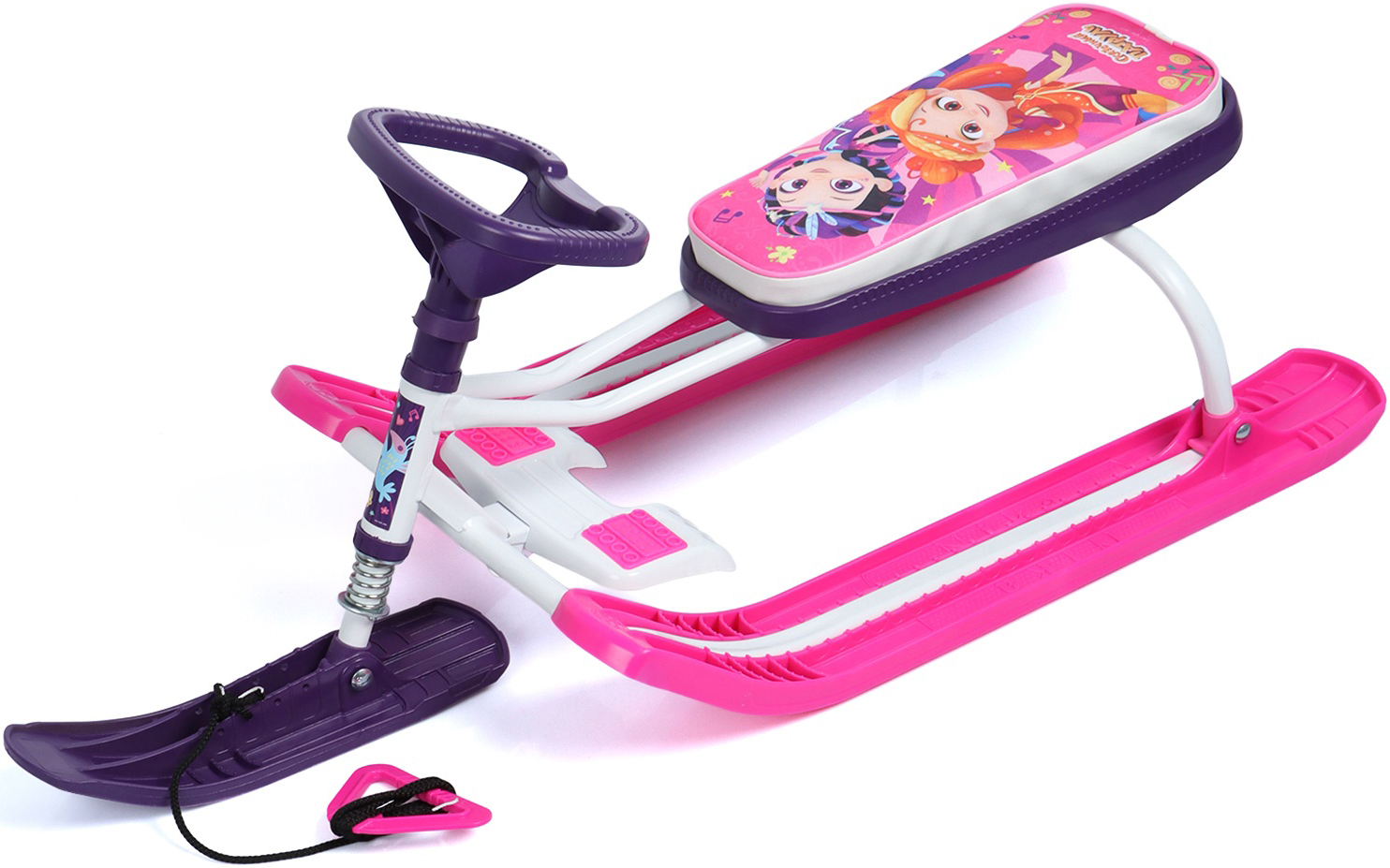 Детский снегокат Тимка Спорт 2 ССП1 Сказочный Патруль имеет сварную конструкцию из стальных труб, пластмассовые лыжи из ударопрочного пластика и мягкое сиденье, обтянутое искусственной кожей с рисунком из любимого мультфильма.