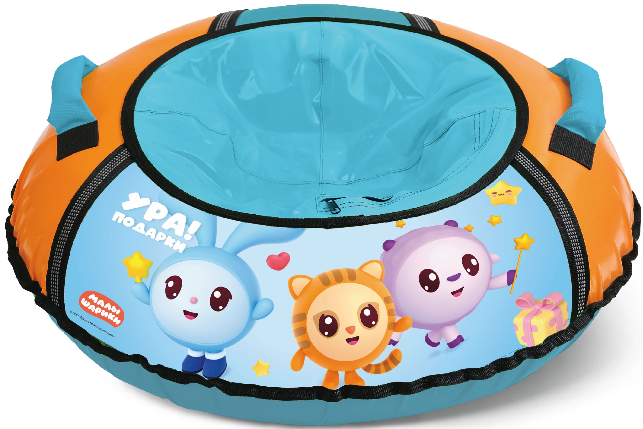 Тюбинг с изображением героев любимого мультфильма Малышарики сделает зимние прогулки еще увлекательнее.