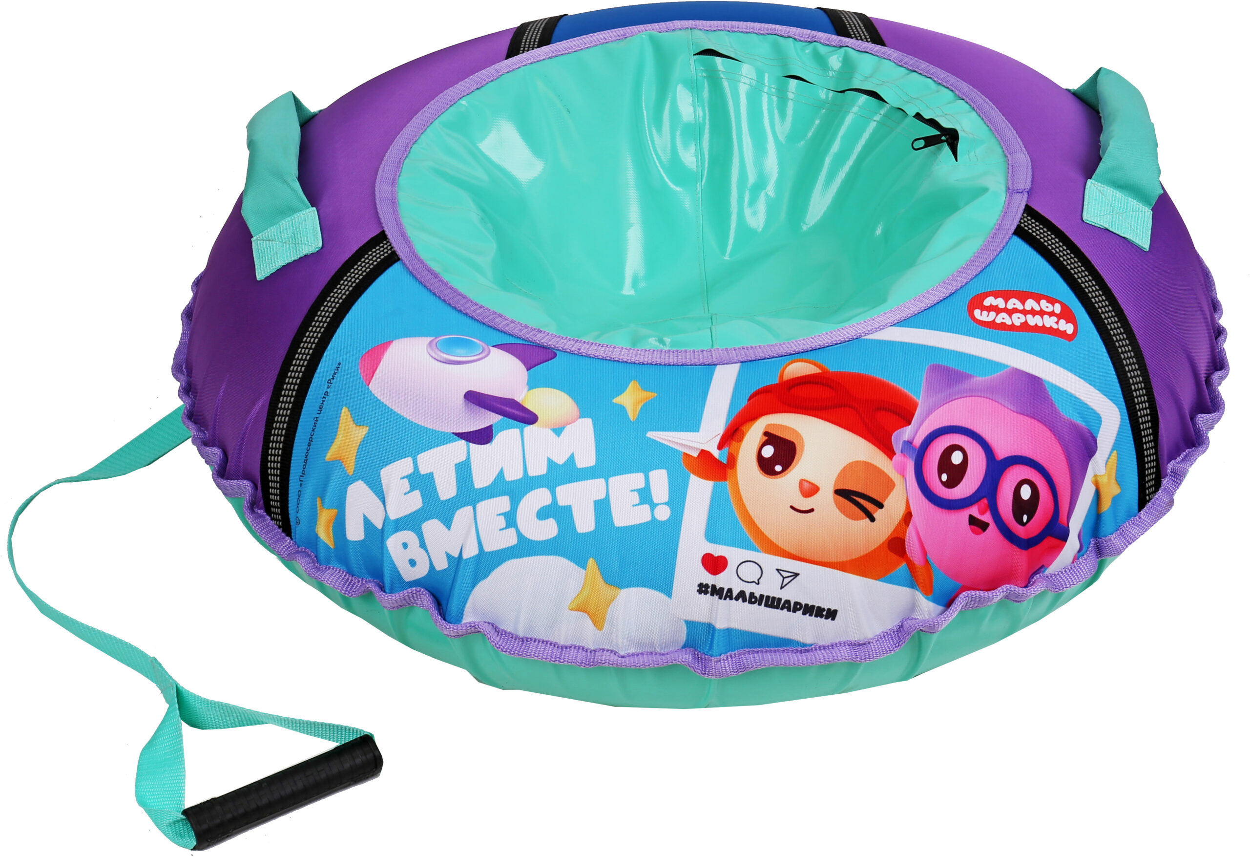 Для переноски ватрушки и удобства катания ватрушка оснащена удобными ручками и буксировочным тросом.